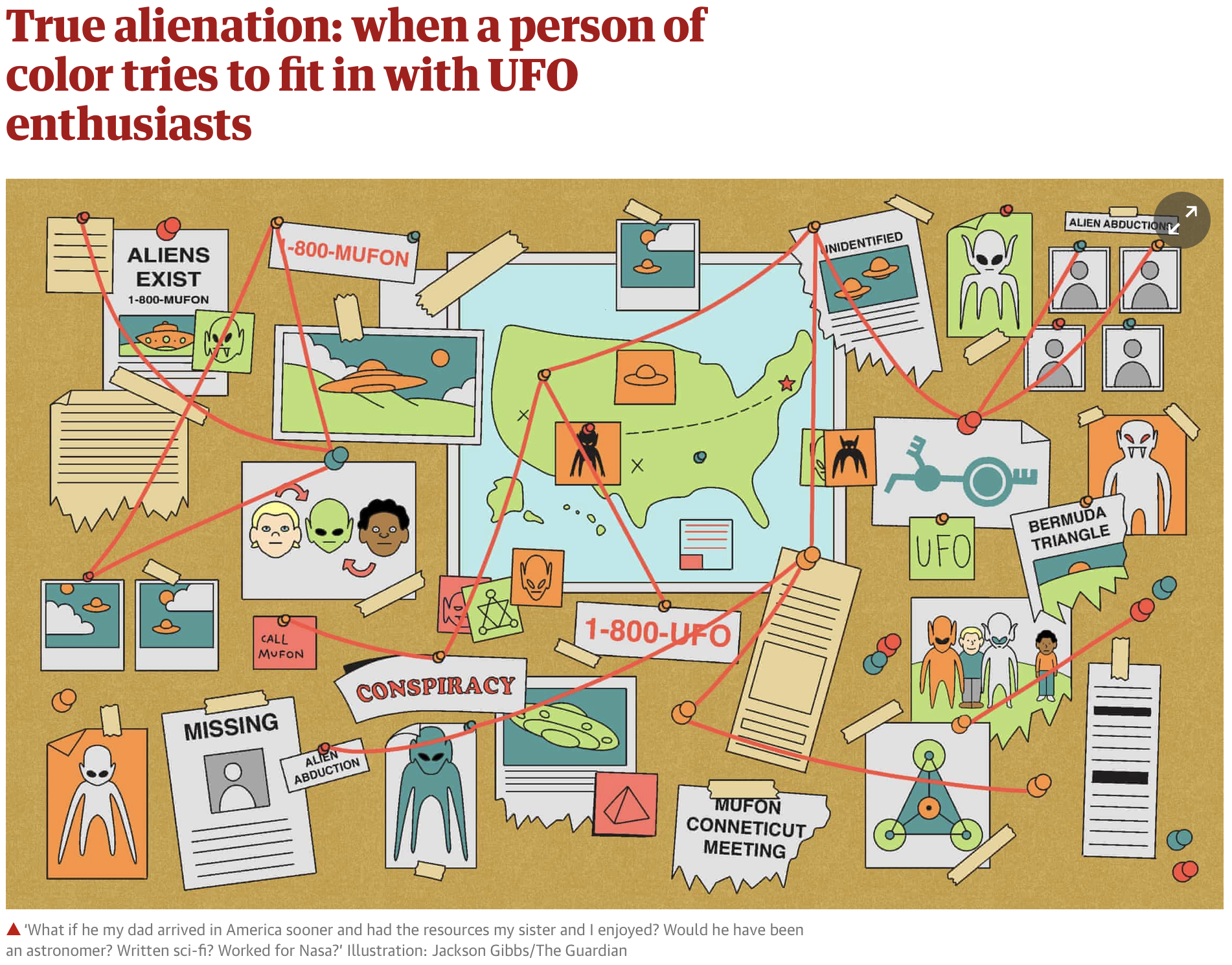 Illustration for The Guardian on a fathers alien obsession and the effects on his daughter. .